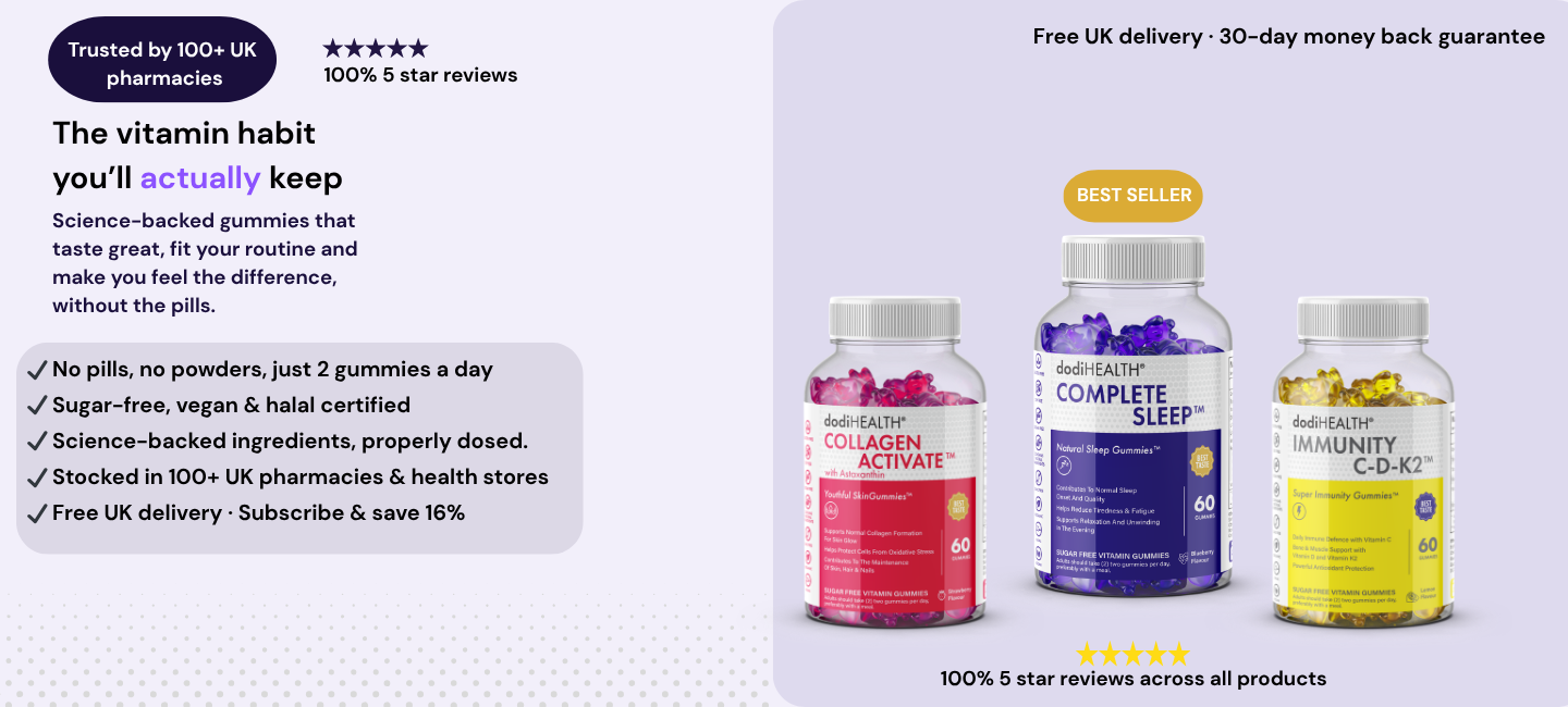 Most people don’t read the label. We do. At dodiHEALTH, every gummy is made with natural ingredients, zero sugar, and no unnecessary fillers. Just powerful, science-backed doses of the vitamins your body actually needs.Our formulas are designed for results you can feel - from glowing skin and deeper sleep to better focus, immunity, and a flatter tummy.They’re delicious, easy to take, and crafted to fit your lifestyle.No pills. No powders. No nonsense.