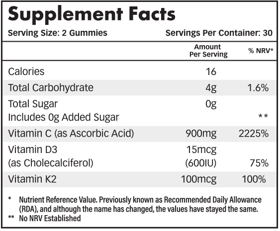 By combining three key nutrients; Vitamin C, D3 and K2, into one high-strength, sugar-free gummy, it’s now easier to stay consistent without the need for multiple supplements or complex stacks.